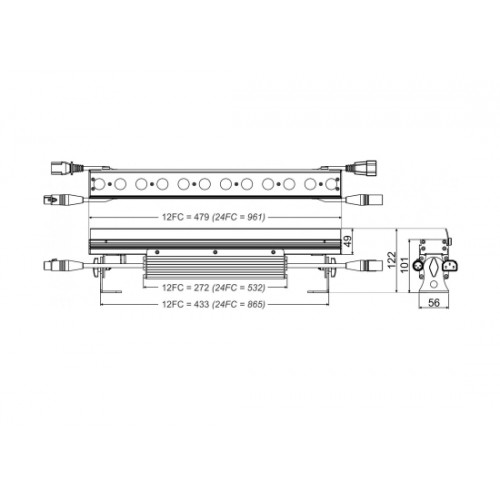 - IEC-C13/C14 und XLR-3pin Ein-/Ausgangsbuchsen ermöglichen die Verkettung von bis zu 16x LDP-COLORSTRIP 24FC
