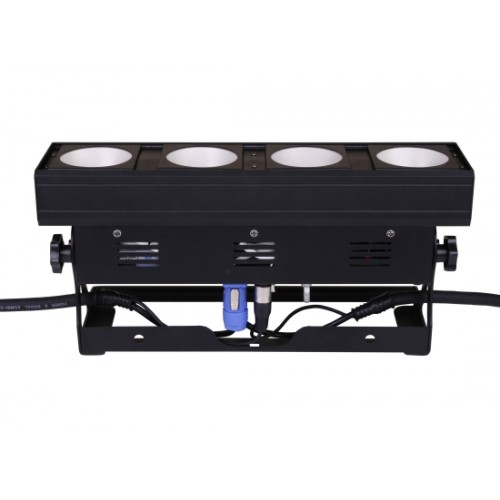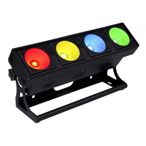 Leistungsstarker LED-Beamer für Innenräume, ausgestattet mit 4 St. 30W COB RGB-LEDs. Dank des sehr breiten 60° Abstrahlwinkels, ist dieser Projektor die perfekte Lösung für die Anwendungen im „Nahbereich“, wie Wandstrahler, sondern auch in großen Bereichen auf Konzertbühnen, in Theatern, Diskotheken, Messeständen usw. Die RGB-Punktquellen verhindern das Bilden von Farbschatten.
