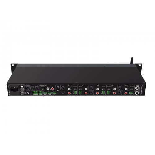 Der INTUWORX PAA71 ist ein 7-Kanal-Mikrofon-/Line-Mixer und das Herzstück jedes Soundsystems. Das Gerät bietet 5 flexible Eingänge, die entweder mit einem symmetrischen Mikrofonsignal oder einem unsymmetrischen Stereo-Line-Signal gespeist werden können. Ein weiterer symmetrischer Stereo-Line-Pegel-Eingang ist besonders nützlich für Quellen in größerer Entfernung, wie z. B. ein Mischpult auf einer Bühne oder den Ausgang eines Systems in einem Nebenraum. Derselbe Eingang kann so umgeschaltet werden, dass er sein Eingangssignal von der 3,5-mm-Klinkenbuchse an der Vorderseite oder der integrierten drahtlosen Audioverbindung LINKOUSTIC 4.2 empfängt. Ein zusätzlicher dedizierter Mikrofoneingang mit einstellbarem Talkover (Priorität) ermöglicht die Kontrolle über Mikrofondurchsagen. Jeder Eingang - mit Ausnahme des symmetrischen Stereoeingangs - ist mit einem Gain-Regler auf der Rückseite und einem 2-Band-Equalizer auf der Vorderseite ausgestattet. Die externen Anschlüsse für Abschaltung und Notrufsignal ermöglichen bei Bedarf die Integration in zentrale Durchsage- und Evakuierungssysteme.Mikrofon-Line-Mischer, 7 Kanäle