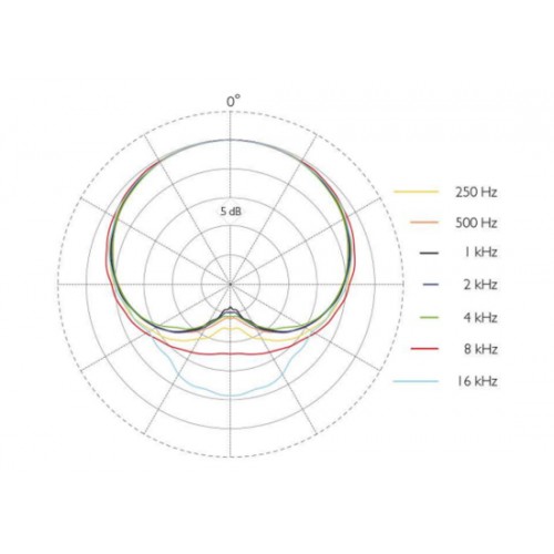 - Empfindlichkeit, nominal, ±3 dB bei 1 kHz: 6 mV/Pa; -44 dB bezogen auf 1 V/Pa