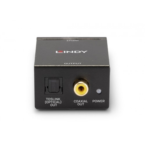 - Konvertiert analoge Audiosignale in digitale Audiodaten, ausgegeben optisch via TosLink oder elektrisch via Koaxialanschluss