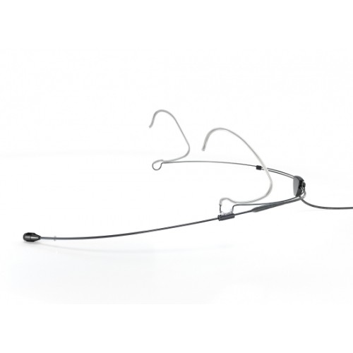 Der Rahmen des Headsets ist aus Edelstahl gefertigt und mit einer PVD-Beschichtung (Physical Vapor Deposition) versehen, die ihn extrem haltbar macht. Er verträgt hohe Temperaturen und ist unempfindlich gegen Stöße und Abrieb. Der Rahmen ist eine Einheitsgröße mit einem einfachen Verstellmechanismus für eine schnelle und einfache Größenanpassung. Anatomisch korrekt passt er sich dank seiner einzigartigen Form eng und bequem an den Kopf an. Das gesamte Mikrofon hat durch die Beschichtung einen angenehmen matten Look, wodurch das gesamte Headset klein und weniger aufdringlich als andere Headset-Lösungen wirkt. Außerdem wird die Größe des Mikrofons durch die PVD-Beschichtung nicht beeinträchtigt, da diese extrem robust und gleichzeitig extrem dünn ist. Der Bügel kann einfach so eingestellt werden, dass er perfekt im Winkel des Lächelns des Darstellers sitzt (die optimale Platzierung eines am Kopf getragenen Mikrofons). Der Galgen kann nicht nur verlängert/verkürzt werden, sondern auch an einem festen Punkt unterhalb des Ohres nach oben und unten geschwenkt werden (kein Verbiegen des Galgens mehr). Ein in die Boomform eingearbeiteter Anti-Rotations-Mechanismus verhindert ein Verdrehen des Booms. Ein Schiebeverriegelungssystem sorgt dafür, dass der Ausleger in der gewünschten Position verriegelt wird. Der gesamte Bügel kann an einem Punkt unterhalb des Ohrs abgenommen und von der rechten auf die linke Seite des Rahmens verschoben werden.