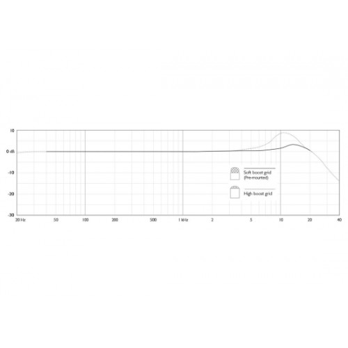 • Effektiver Frequenzbereich ±2 dB: Soft-Boost-Raster: 40 Hz - 20 kHz, 3 dB weiche Anhebung bei 8 - 20 kHz. High-Boost-Raster: 40 Hz - 20 kHz, 10 dB Anhebung bei 12 kHz