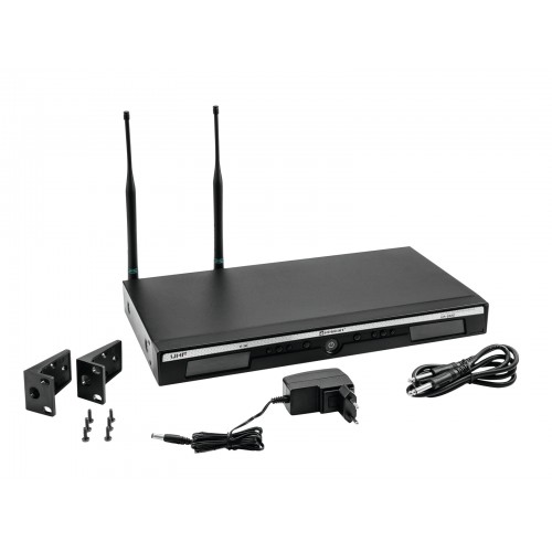 - 1 x Empfänger, 1 x Externes Netzteil, 2 x Antenne, 2 x Montagebügel, 6 x Schrauben, 2 x Klinke Kabel, 1 x Bedienungsanleitung, 1 x Konformitätserklärung