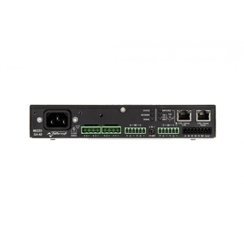 Mezzo 324 AD bietet das gleiche Maß an Zuverlässigkeit, Verarbeitungsqualität und akustischen Eigenschaften wie alle Powersoft-Verstärkerplattformen, ist aber nur halb so groß. Die äußerst flexiblen "AD"-Versionen von Mezzo bieten alle Fernsteuerungs- und Überwachungsfunktionen der "A"-Versionen und erweitern die Netzwerkfähigkeiten mit Dante und AES67. Die 320-W-Versionen von Mezzo können dank des mitgelieferten Montagesatzes auch in Lüftungsräumen, wie z. B. in Doppeldecken oder Wandkästen, montiert werden.
