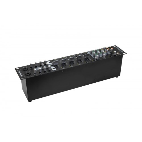 Eingangskanal: 3 x Stereo mit Line-Line Schalter über Cinch, Kanalregelung über Fader, , Gainregler, Quellen-Umschalter, CUE-Schalter