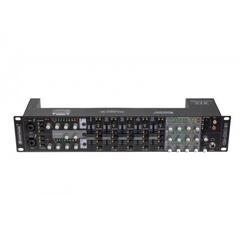 - 3 regelbare Masterausgänge mit 3-Band-EQ und 10-stelliger Stereo-LED-Pegelanzeige