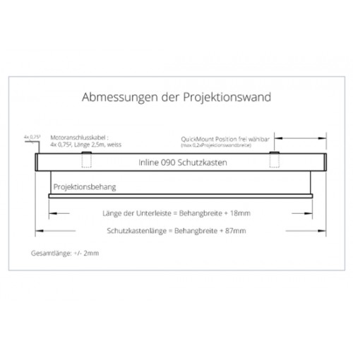 Ob als Standardgröße oder maßgefertigt – INLINE lässt die Projektionswand stilvoll verschwinden. Eine hochwertige, stationäre Projektionswand muss verschiedene Kriterien erfüllen. Ihre Bilder sollen groß, brillant und wirkungsvoll erscheinen – wird sie nicht benötigt, soll sie unsichtbar sein. Deshalb verschwindet beim System INLINE die Bildwandunterleiste im Kasten und schließt mit diesem plan ab.