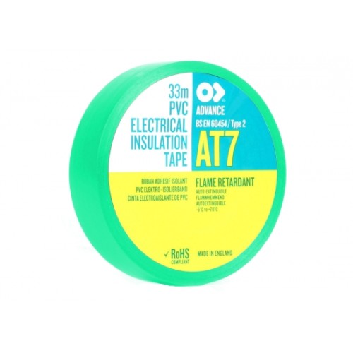 AT7 entspricht den Anforderungen von BS EN 60454 Typ 2, ist flammhemmend und selbstverlöschend und geeignet sich für alle mechanischen und elektrischen Anwendungen. Es ist leicht abwickel- und abreißbar und reduziert das Risiko eines RSI-Syndroms. Wegen seiner Wasser- und UV-Beständigkeit kann es im Innen- und Außenbereich eingesetzt werden. Seine extreme Anpassungsfähigkeit ermöglicht den Einsatz auf schwierigen Oberflächen. Geeignet zur Kabelisolierung, Umwicklung und Farbcodierung.