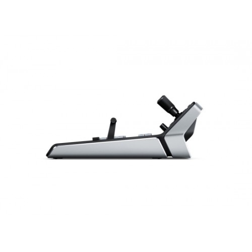 Neben dem integrierten LCD wartet das Pult mit hochwertigen ergonomisch geformten Tasten auf, die das versehentliche Drücken der falschen Tasten verhindern. Die Tasten sind farbig hinterleuchtet, damit Sie die benötigten Tasten immer im Blick haben. Für mühelose DVE- und Kamerajustierungen sorgen indes ein professioneller Joystick und ein gewichteter Blendenhebel. Auch die zu den Tasten gehörigen dynamischen Displays lassen sich vom Nutzer farblich anpassen und benennen.