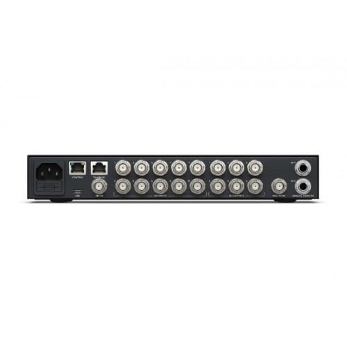 - Multi View Monitoring: 1 Multi View konfigurierbar für 16, 13, 10, 7 oder 4 Ansichten. Einschließlich fürs Monitoring von Programm, Vorschau, Eingaben, Media Playern, DSK, Clean-Feed mit optionalen Kennungen und Audiopegelmetern