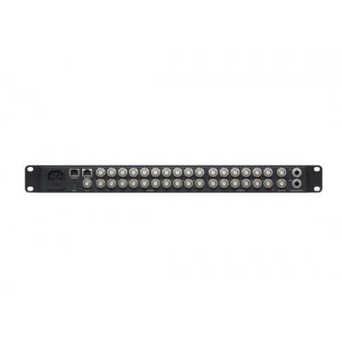 - Multi View Monitoring: 2 Multi Views jeweils für 16, 13, 10, 7 oder 4 Ansichten konfigurierbar. Einschließlich fürs Monitoring von Programm, Vorschau, Eingaben, Media Playern, M/E-Ebenen, DSKs, SuperSource, Clean-Feed mit optionalen Kennungen und Audiopegelmetern