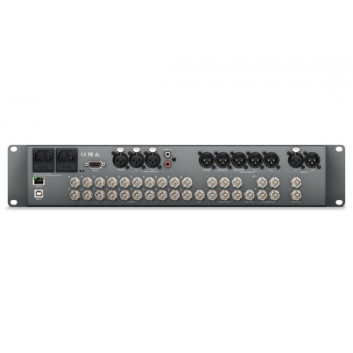 - SDI-Videoeingänge: 20 Anschlüsse für 10 Bit für HD/Ultra HD 4K, umschaltbar 2 eingebettete Audiokanäle