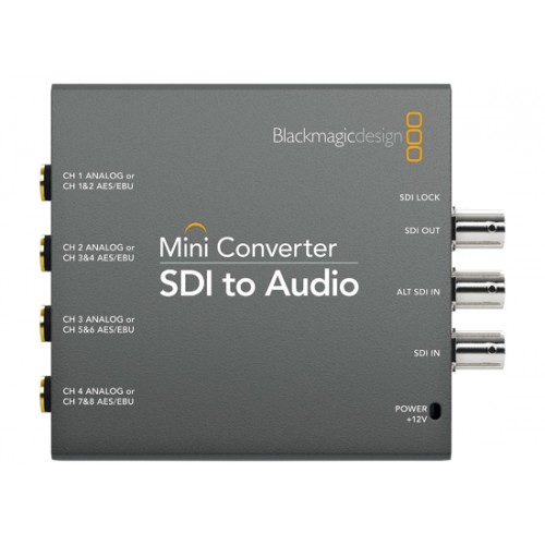 Genau das Richtige zum Herauslösen von Audio aus beliebigen SDI-Quellen in den Formaten SD und HD bis zu 1080p/60! Audiosignale werden via ¼-Zoll-Anschlüsse als symmetrisches Analogaudio bzw. AES/EBU-Audio an Geräte wie Mischer, analoge MAZen, Audiomonitoren usw. ausgegeben. Ein Mini Converter SDI to Audio bietet sich zum Herauslösen von Audio aus SD/HD-SDI-Signalen an, wo kein Ultra-HD-Modell von Nöten ist und Sie Kosten senken möchten.