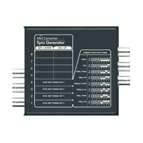 Enthält sechs quarzstabile Video-Referenzausgänge um sämtliches Videoequipment Ihres Studios entweder im Fernsehstandard HD-Tri-Sync oder SD-Blackburst zu takten