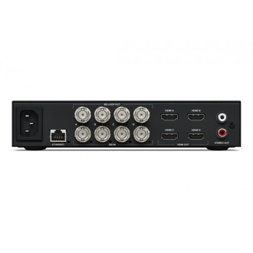 - Digitalaudio-Ausgänge: 16 Kanäle mit eingebettetem Audio auf allen SDI-Durchschleifausgängen und 8 Kanäle auf HDMI-Ausgängen