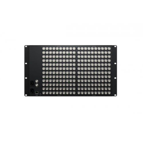 - Riesige 12G-SDI-Videokreuzschiene für Mischformate mit je 120 Ein- und 120 Ausgängen
