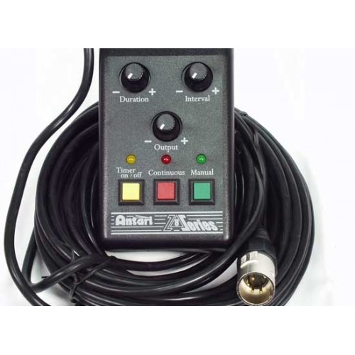 Die Z-8 ist eine Multifunktions-Fernbedienung, mit der sich über ein 10 Meter-Kabel mit 4-poligem XLRStecker das Modell ANTARI Z-1200II fernbedienen lässt. Mit dem Intervallknopf kann die Zeit zwischen den Nebelproduktionen eingestellt werden, wenn der Timer aktiviert ist. Der Bereich beträgt 10 Sekunden ~ 250 Sekunden.