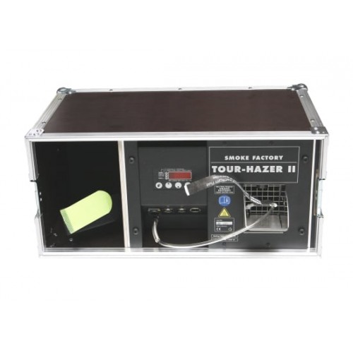 Der Tour Hazer II-S wird mit zwei DMX Kanälen angesteuert. So ist es möglich den integrierten Lüfter und die erzeugte Hazemenge unabhängig von einander zu steuern. Mit Hilfe des Lüfters kann der erzeugte Haze weit im Raum verteilt werden. Es wird kein CO2 oder ähnliches für den Betrieb benötigt.