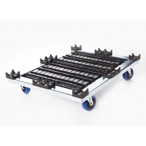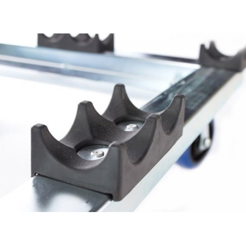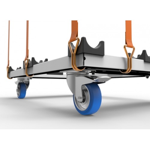 Die Basis dieses Kraftpakets ist für Traversen mit 29cm / 39cm Gurtmaß geeignet und besteht aus starkem Stahl. Der Strong Boy ist mit Zink beschichtet und dank der Gummibeschichtung lassen sich die Traversen einfach und sicher stapeln. Das Verrutschen der Traversen gehört von nun an der Vergangenheit an. Zusätzlich lassen sich an jeder Seite des Wagens Spanngurte an den vorhandenen Haken angebracht werden, um die Ladung zu sichern.