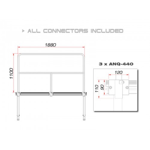 GUIL TMQ-02/440 Bühnengeländer 188cm Aluminiumversion sw