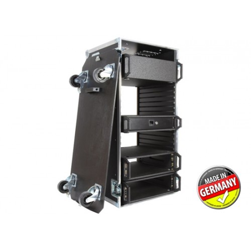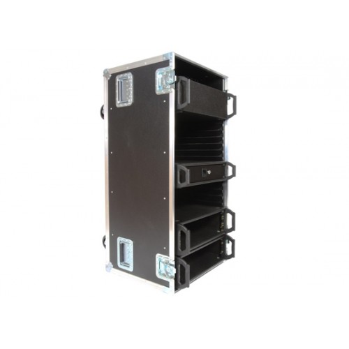 Die Cases sind ausgestattet mit Nutwänden zur Aufnahme der Vario-Racks. Der vordere Deckel ist abnehmbar und auch das Rollbrett ist mit Hilfe bewährter Cam-Loc Verschlüssen abnehmbar. So ist jederzeit schneller Zugriff und ausreichende Belüftung auf Vorder- und Rückseite gewährleistet.