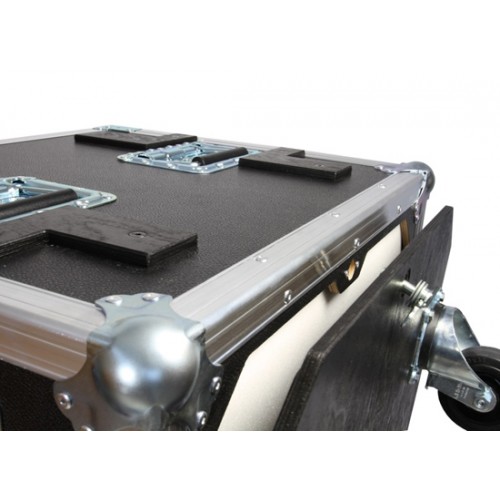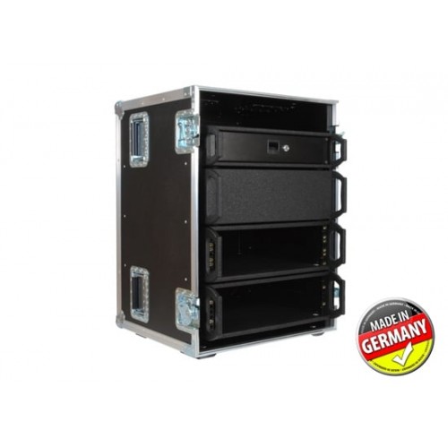 Die Cases sind ausgestattet mit Nutwänden zur Aufnahme der Vario-Racks. Der vordere Deckel ist abnehmbar und auch das Rollbrett ist mit Hilfe bewährter Cam-Loc Verschlüssen abnehmbar. So ist jederzeit schneller Zugriff und ausreichende Belüftung auf Vorder- und Rückseite gewährleistet.