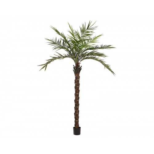 Holen Sie sich mit der künstlichen Kentia Palme deluxe ein Stück Urlaubsfeeling in Ihre Räumlichkeiten.Mit einer Gesamthöhe von ca. 300 cm ist sie nicht zu übersehen und eignet sich perfekt als Mittelpunkt der Palmendekoration in Ihrem Hotel, Ihrer Wellnesslandschaft oder in Ihrem Wintergarten. Um ein möglichst naturgetreues Erscheinungsbild zu erreichen, wurde bei dem aufwändig gearbeiteten Kunststamm zwischen den einzelnen Abschnitten echtes Palmfasermaterial eingearbeitet. Die biegsamen Palmwedel sind mit Blättern aus Textilfasermaterial bestückt.Die Auslieferung der Kunstpflanze erfolgt in zwei Teilen: der Stamm und die auf einem Schaft vormontierte Palmenkrone müssen nur noch zusammengesteckt und die Wedel in Form gebogen werden.