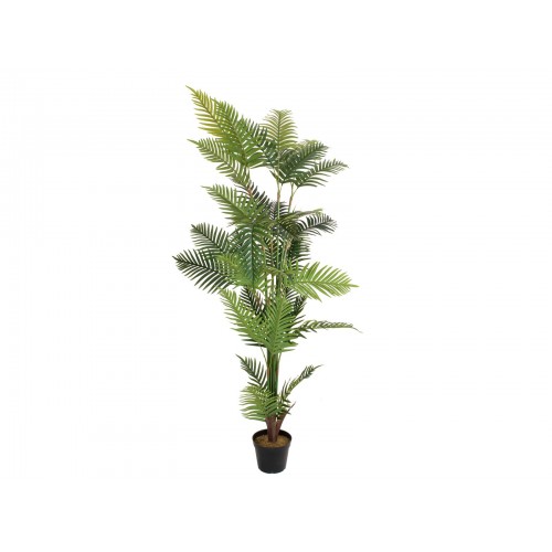 Areca-Palmen zählen durch ihr üppiges Grün zu den beliebtesten Zimmerpflanzen für Büro- und Wohnräume. Holen auch Sie sich mit der künstlichen Areca von Europalms einen pflegeleichten, immergrünen Blickfang in Ihre Räumlichkeiten!Die künstlichen Wedel der Palme sind unterschiedlich lang und wurden aus PU gefertigt. Sie haben, wie ihr natürliches Vorbild, nur einen Blattstiel und wirken, als wären sie aus einem einzigen ovalen Blatt entstanden. Da die ersten Wedel bereits unten am Stamm in kurzen Trieben angesetzt wurden, hat die Kunstpflanze ein besonders voluminöses Aussehen.Die Areca hat eine Gesamthöhe von ca. 180 cm und wird in einem schwarzen Gärtnertopf geliefert, welcher der Pflanze einen stabilen Stand beim Einstellen in einen Übertopf gibt.