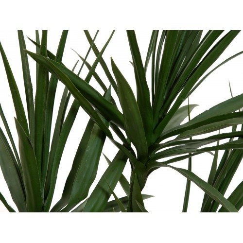 Die Dracena, auch als Drachenbaum bekannt, beeindruckt mit ihren schlanken Stämmen und den langen, schmalen Blättern, die ihr eine ausdrucksstarke und formschöne Präsenz verleihen. Aufgrund dieser Wuchsform ist sie eine gern genutzte Raumbegrünung.Die künstliche Variante von Europalms ist eine pflegeleichte Alternative zur echten Pflanze und wurde komplett aus Kunststoff hergestellt. In einem schlichten Pflanztopf sind drei Stämme arrangiert, wobei sich der mittlere im oberen Bereich mehrfach verzweigt. Dies sorgt für ein besonders üppiges und lebendiges Erscheinungsbild. Gleichzeitig unterstreichen die Blätter mit einer natürlich wirkenden Farbgebung die elegante Optik der Kunstpflanze und setzten stilvolle Akzente. Ob als elegantes Deko-Element im Wohnbereich, als modernes Gestaltungselement in Büros oder als stilvolle Begrünung in gastronomischen Räumen - sie passt sich mühelos jeder Umgebung an.Dank einer cleveren Lösung, die für eine platzsparende Verpackung sorgt, muss beim Aufbau der Kunstpflanze nur der Kopf des Mittelteils in einen gekennzeichneten Schaft eingesetzt werden.Drachenbaum als elegante Zimmerpflanze