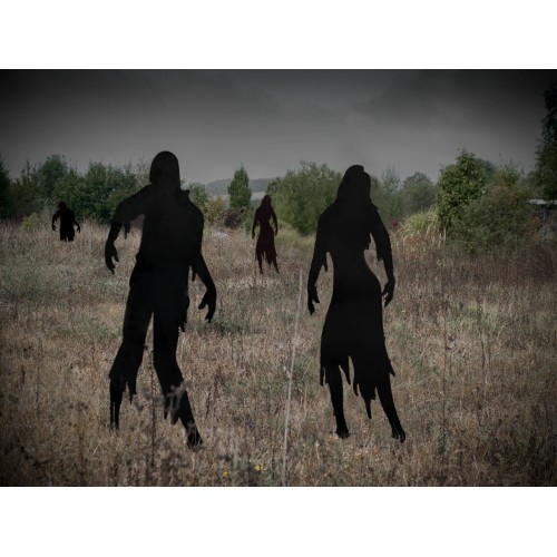 Sie planen eine Motto- oder Halloween-Party und suchen noch nach einem passenden Highlight für die entsprechend schaurige Atmosphäre? Mit den Metall-Silhouetten von Europalms setzen Sie Akzente oder gestalten eine komplette Grusel-Szenerie, die Ihre Gäste begeistern wird.Der 135 cm große Schattenriss stellt einen weiblichen Zombie mit zerfetzten Kleidungsstücken dar. Lassen Sie sich nicht von der mädchenhaften Gestalt täuschen, denn jeden Moment kann die Untote zum Angriff auf Ihre Opfer übergehen!Bestimmen Sie den Gruselfaktor selbst, indem Sie durch indirekte Beleuchtung oder den Einsatz einer Nebelmaschine den schaurigen Effekt verstärken.Im Lieferumfang sind ca. 11 cm lange Erdspieße aus Metall enthalten, die sich mit wenigen Handgriffen anschrauben lassen. Somit steht auch einem Außeneinsatz in Ihrem Garten oder Vorgarten nichts im Wege.Zombie-Silhouette Frau als Blickfang im Garten