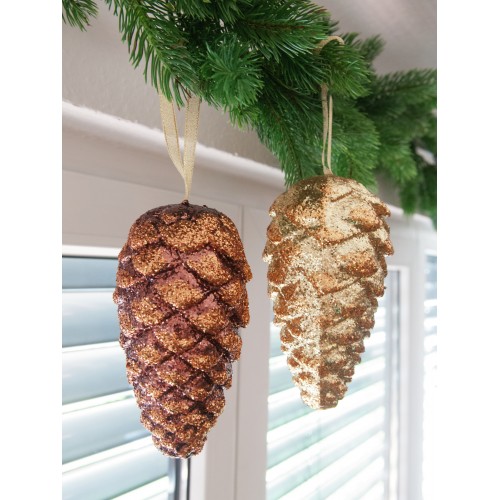 EUROPALMS Tannenzapfenhänger, glitzer, gold, 18cm
