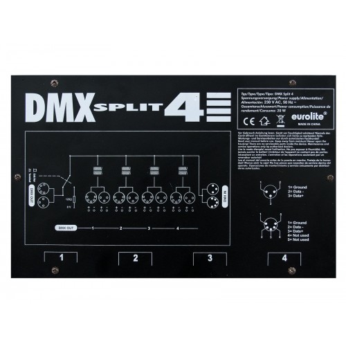 • DMX-Verteiler für die Aufteilung eines DMX-Eingangssignals auf 4 DMX-Ausgänge