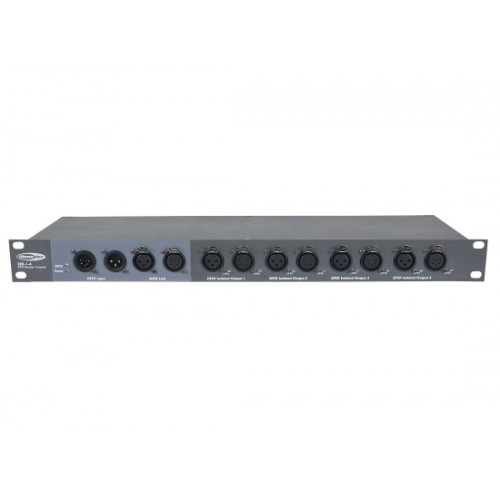 Der DB-1-4 ist ein Universal DMX-512 Optical-Splitter. Er verteilt das eingehende DMX-Signal, in Kettenkonfigurationen, in vier separate Outputs mit einem zusätzlichen "thru" Port. Zum leichten Anschluss verfügt der DB-1-4 über 3 pol und 5 pol XLR Anschlüsse. Das Gerät kann in jedes 19" Gehäuse eingebaut werden oder mit der M10-Nut auf der Rückseite in den Träger. Der Lichtcontroller verfügt über deutliche LEDs, um den DMX Signal Status von jedem Output und Input anzuzeigen.