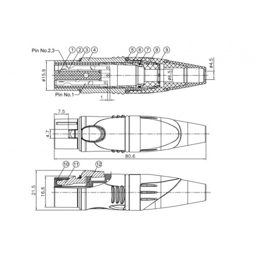 Der 3-polige XLR Connector verfügt über eine dreifach positionierte Klemme, um zu vermeiden, dass das Innenkabel zusammengedreht und gebrochen wird. Diese abnehmbare Klemme ist für mehrere Kabeltypen entwickelt.