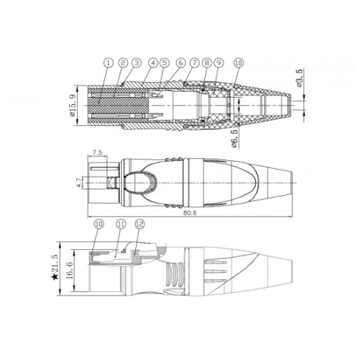 Der 5-polige XLR Connector verfügt über eine dreifach positionierte Klemme, um zu vermeiden, dass das Innenkabel zusammengedreht und gebrochen wird. Diese abnehmbare Klemme ist für mehrere Kabeltypen entwickelt.