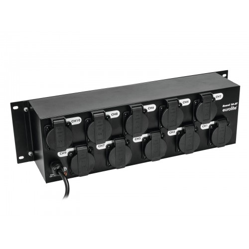 - Komplett verkabeltes Gehäuse mit 10 Schutzkontaktsteckdosen