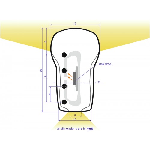 Lichtaustritt: | Oben 12 mm Unten 3 mm |