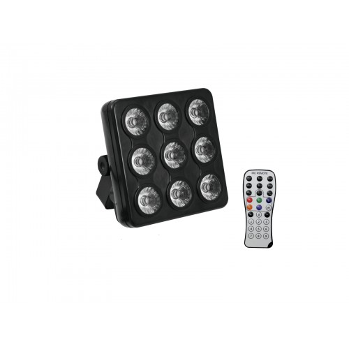 - Ansteuerbar über Stand-alone; DMX; Musiksteuerung über Mikrofon; IR-Fernbedienung