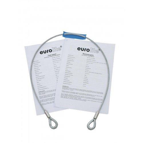 EUROLITE SicherungsseileDie EUROLITE Sicherungsseile ensprechen den aktuellen berufsgenossenschaftlichen Vorschriften aus der BGI 810-3:2007-03 Lasten über Personen und wurden auf Grundlage der europäischen Normen DIN EN 12385-4:2008-06 und DIN 56927:2009-03 konstruiert.Die Seile werden von einem renommierten deutschen Hersteller gefertigt und bei der LGA von einem unabhängigen, akkreditierten Institut überprüft. Die dort ermittelte Bruchlast wird im von der Berufsgenossenschaft geforderten Werkszeugnis nach DIN EN 10204 dokumentiert.Somit kann der Anwender diese Sicherungsseile bedenkenlos im Bereich der BGV C1 anwenden, um Lasten über Personen zu sichern.Hochwertiges Sicherungsseil