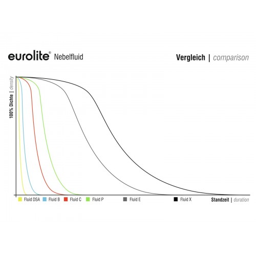 Eurolite Nebelfluid - Made in GermanyVertrauen ist wichtig, Kontrolle natürlich besser - daher prüfen wir unsere Nebelfluide nach geltenden Normen um die gesetzlichen Vorgaben wie z. B. die REACH-Verordnung zu erfüllen.Es muss Gründe geben, wenn ein Produkt seit über zwei Jahrzehnten das Vertrauen der Kunden genießt. Es muss Gründe dafür geben, dass wir in über 20 Jahren mehr als 1 Million Einheiten Nebelfluid verkauft haben. Qualität und Verlässlichkeit sind die entscheidenden Komponenten für den Erfolg. Unsere Kunden wissen, dass sie mit jedem Eurolite Fluid ein absolut hochwertiges Produkt in Händen halten. Um hochwertig zu sein, muss das Produkt nicht nur den gewünschten Nebel erzeugen; ein Fluid darf keinesfalls die Gesundheit der Menschen gefährden. Das mag nun etwas dramatisch klingen, aber Tatsache ist, dass durch unreine Flüssigkeiten die Atemwege stark angegriffen werden können. Außerdem können leicht entzündbare Flüssigkeiten ebenfalls für großen Schaden sorgen. Viele Anbieter beachten diese Gefahren leider nicht! Bei Steinigke hingegen werden die Eurolite-Fluide einem strengen Prüfverfahren unterzogen. Zudem lassen wir die Fluide von unabhängigen Stellen testen - und zwar regelmäßig. Daher können wir, im Gegensatz zu vielen anderen, garantieren, dass unsere Fluide folgende Qualitätseigenschaften aufweisen:-auf Wasserbasis-geruchsfrei-Glycerin-frei-toxikologisch unbedenklich-gesundheitlich unbedenklich-gut biologisch abbaubar-nicht entzündbarJeder, der unsere Nebelfluids verwendet, schenkt uns Vertrauen. Wir geben dieses durch rigide Kontrollen unserer Fluids zurück - so haben beide Seiten etwas davon.Langanhaltender Nebeleffekt mit hoher Dichte