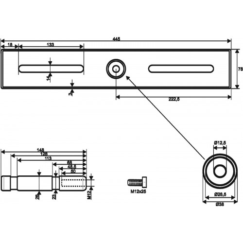 Horizontaler Adapter mit TV-Zapfen von 160 - 405 mm, Maximallast WLL 180 kg