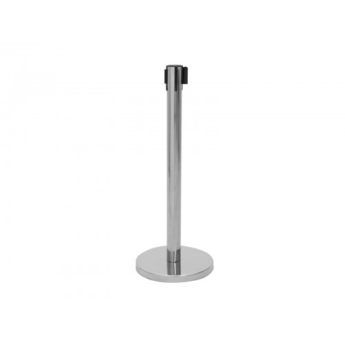 Absperrständer mit silberner Metalloberfläche und ausziehbarem GurtVariabel einsetzbar als Personenl..