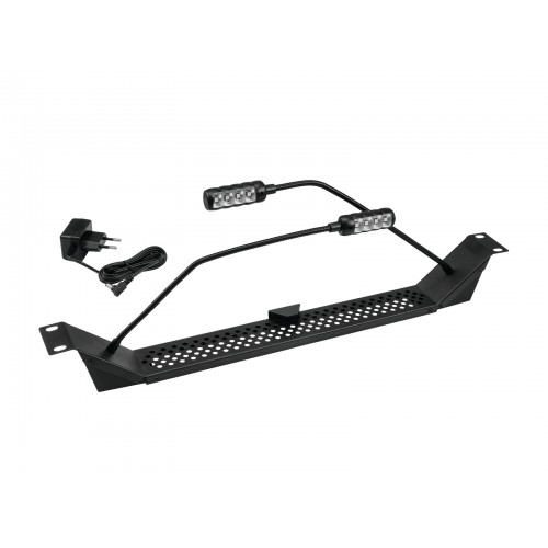 - 483-mm-Frontplatte zum Rackeinbau mit 2 LED-Schwanenhalsleuchten