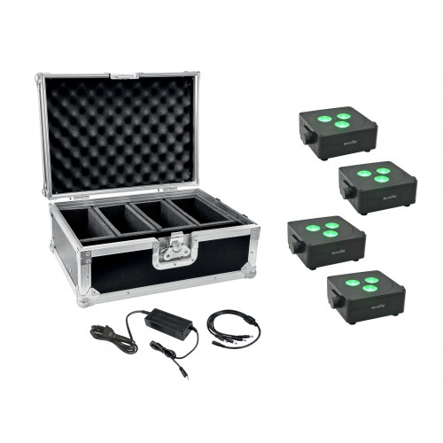 EUROLITE Set 4x AKKU IP Flat Light 3 sw + Ladenetzteil + Case