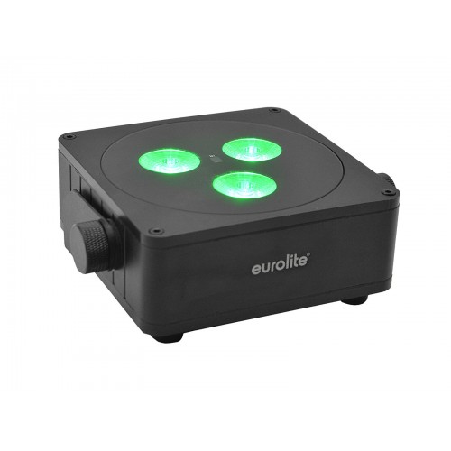 Flacher IP65-Scheinwerfer in schwarz mit 3 x 8-W-4in1 QCL RGBW-LED, QuickDMX-Transceiver,