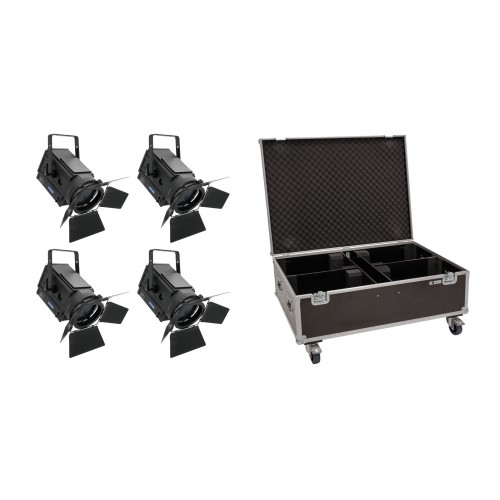 4x Fresnel-Scheinwerfer mit 170-W-Warmweiß/Amber-LED inklusive PRO Flightcase