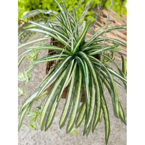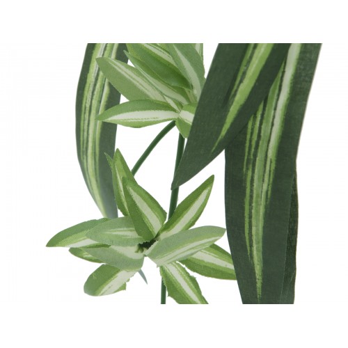 Egal ob auf der Fensterbank, im Regal, als Teil einer Hängeampel oder auf einem Podest: Grünlilien sind wahre Allrounder. Als immergrüner "Mitbewohner" fügt sich die Zimmerpflanze stilsicher in jeden Wohn- und Geschäftsbereich ein.Wie bei ihrem natürlichen Vorbild bilden auch bei dieser künstlichen Version lange, schmale, lanzettenartige Blätter aus Textil einen dichten Blattschopf mit überhängendem Wuchs. Aus mehreren, lang herabhängenden Blütentrieben haben sich bei dem Pendant einer echten Grünlilie bereits fertige Ableger (Kindeln) gebildet und geben der Kunstpflanze dadurch ein besonders naturgetreues Erscheinungsbild. Die Pflanze fällt selbständig in Form und ein praktischer Einsteckstab aus PE ermöglicht ein schnelles und unkompliziertes Dekorieren.Extrem realistisch wirkende Pflanze, fällt von selbst in Form