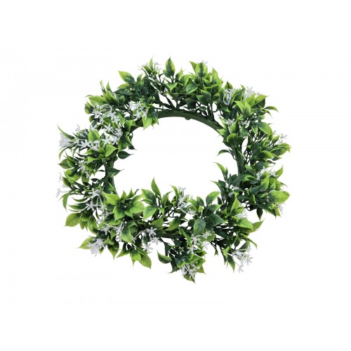 Der künstliche Jasminkranz von Europalms hat einen Durchmesser von ca. 30 cm.Sein grünes Blattwerk und die dekorativen weißen Blüten sind komplett aus PE gefertigt und deshalb auch für einen Einsatz im Außenbereich gut geeignet.Als Türkranz begrüßt er Ihre Besucher und Kunden oder verleiht als repräsentatives Deko-Element Ihrem Balkon, Ihrer Terrasse oder Ihren Wohnräumen im Handumdrehen ein ansprechendes sommerliches Ambiente. Auch als Tischdekoration bei Taufen oder Hochzeiten eignet sich der Kranz ideal.Jasminkranz für themenbezogene Dekorationen