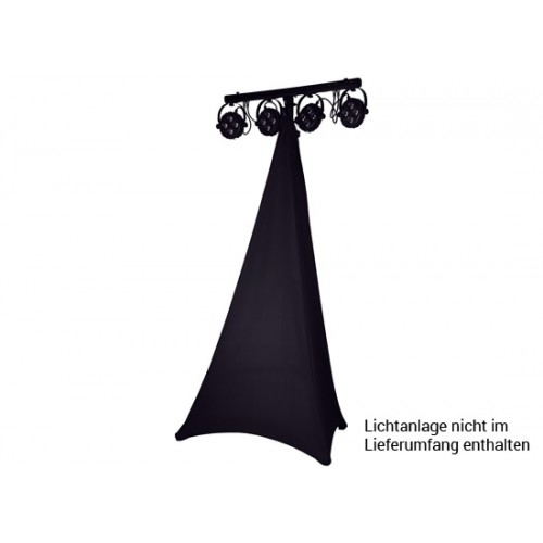 Elegant und aufgeräumt präsentiert sich der Aufbau eines DJ´s mit verkleideten Stativen, schick und modern lassen sich Hintergründe illuminieren